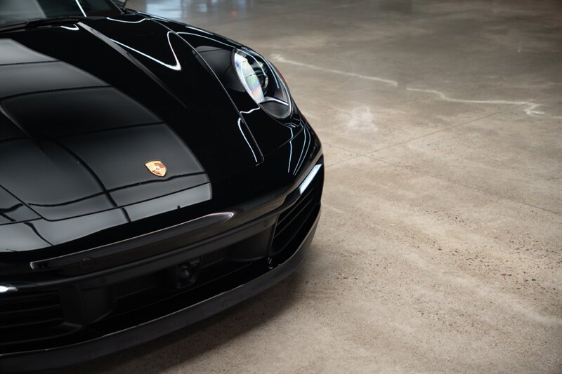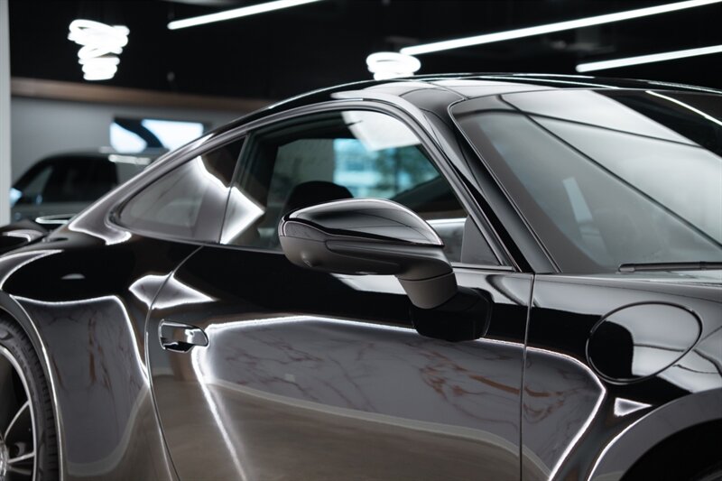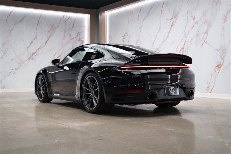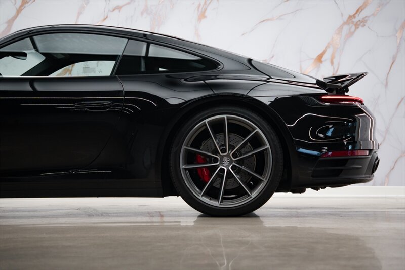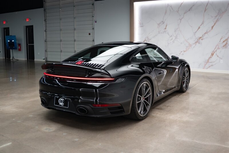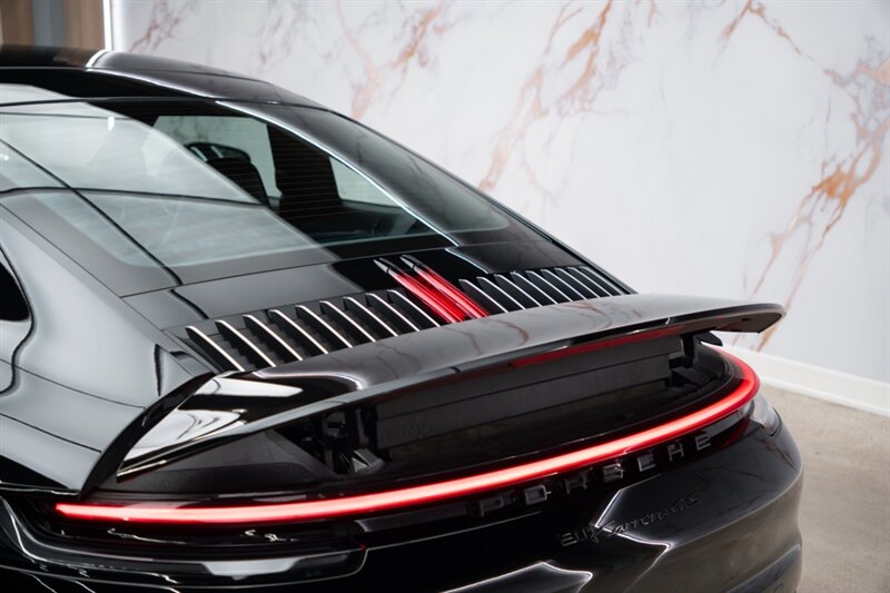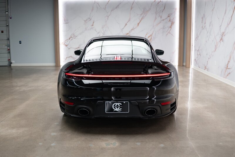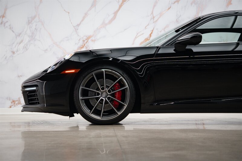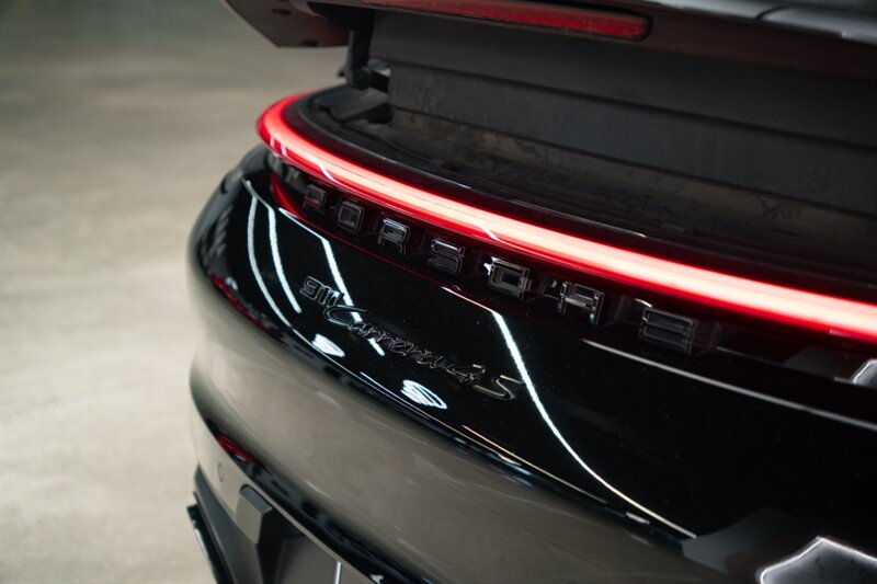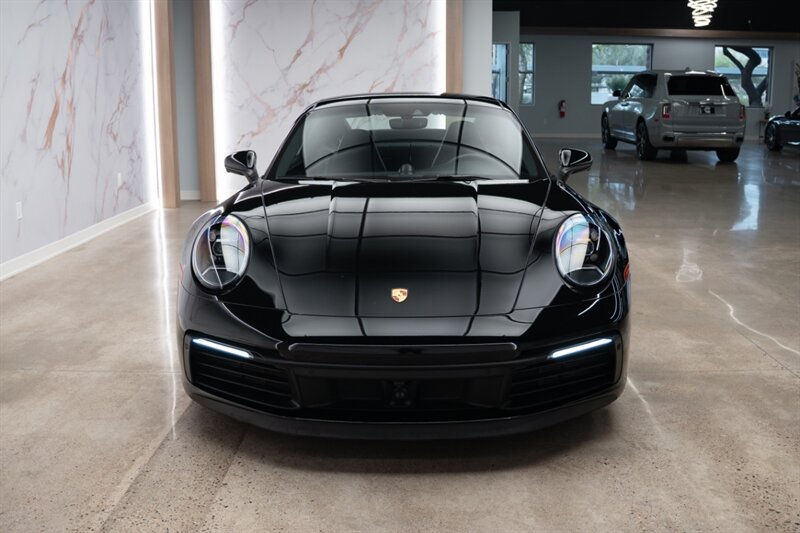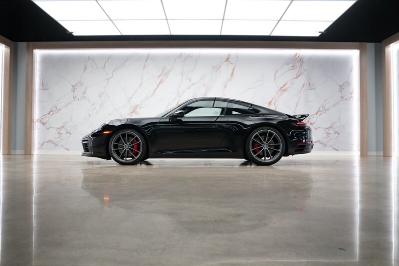 This 2020 Porsche 911 Carrera 4S is a black-on-black in great overall condition. It features a black exterior paired with a black interior and has 26,203 miles.