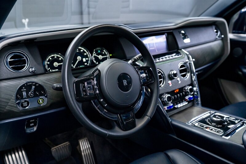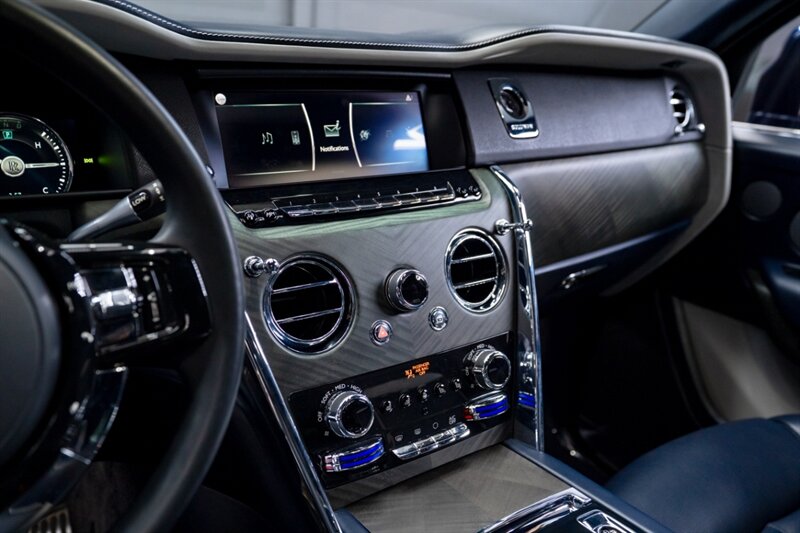 2020 Rolls-Royce Cullinan in excellent overall condition, powered by a 6.8L twin-turbo V12 producing 563 hp and 627 lb-ft of torque, mated to an 8-speed automatic with all-wheel drive. Factory standard equipment includes adaptive air suspension with automatic leveling, full LED lighting, 22-inch wheels, soft-close doors and power tailgate, handcrafted leather upholstery and real wood trim, heated and ventilated power front seats with memory, heated rear seats, multi-zone climate control, keyless entry/start, adaptive cruise control, parking sensors with a 360-degree camera, and an integrated navigation/infotainment system.