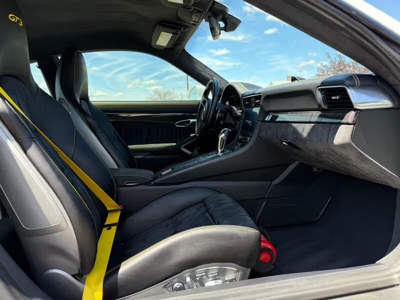 Paint protection film has been applied to the front fascia, hood, front fenders, & mirror caps. The 18-way adaptive Sport Plus seats are trimmed in black leather & Alcantara with Racing Yellow seatbelts and contrasting stitching that extends to the dashboard, center armrest, and door panels. Carbon-fiber trim accents the cabin, & additional appointments include a fire extinguisher, carbon-fiber illuminated door sill guards, Voice Control, a Bose sound system, automatic climate control, & cruise control.