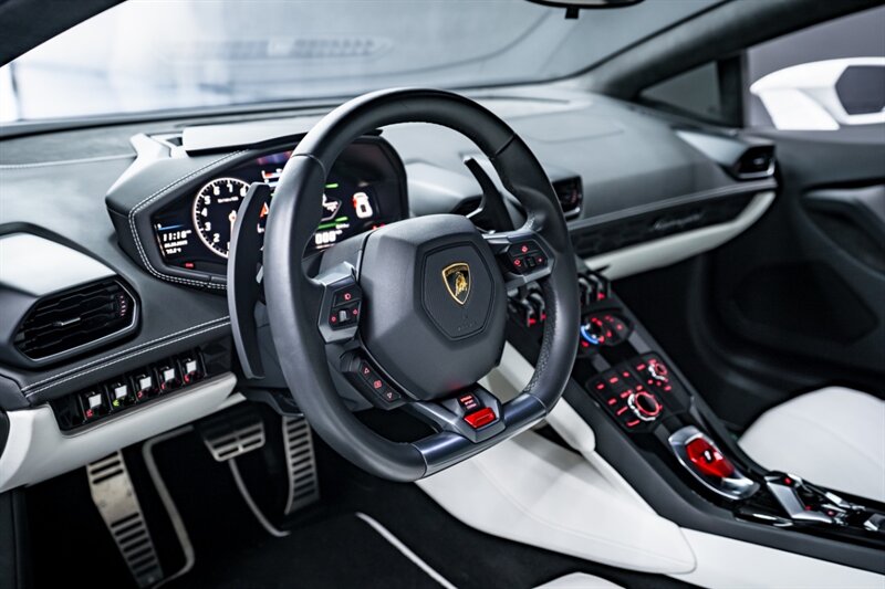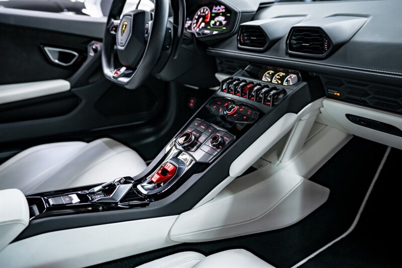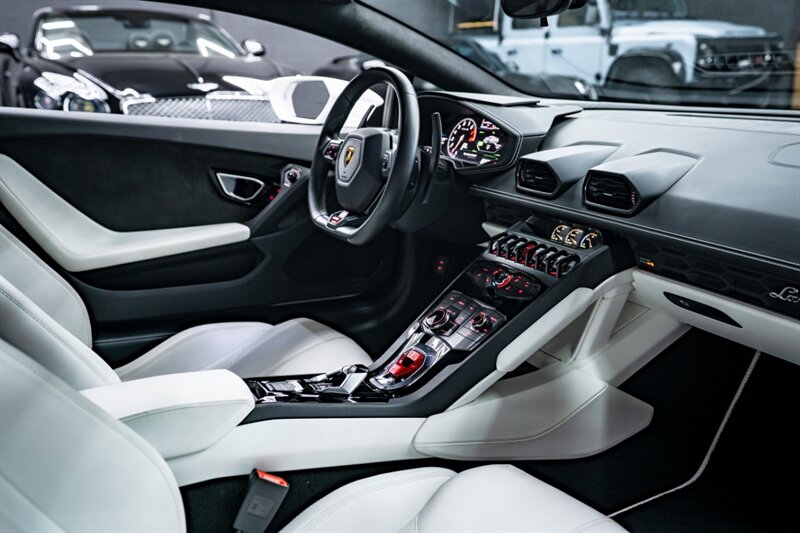 2016 Lamborghini Huracán LP 610-4 powered by a 5.2L V10 producing 602 hp and 412 lb-ft of torque. Factory-standard equipment includes full-time all-wheel drive, a 7-speed dual-clutch transmission with launch control, high-performance ventilated brakes, LED lighting, leather-appointed power seats, multifunction steering wheel, dual-zone climate control, factory infotainment with navigation and Bluetooth, rearview camera and parking sensors, and a full digital driver display. Vehicle is in excellent overall condition with under 6,000 miles total, averaging less than 1,000 miles per year.