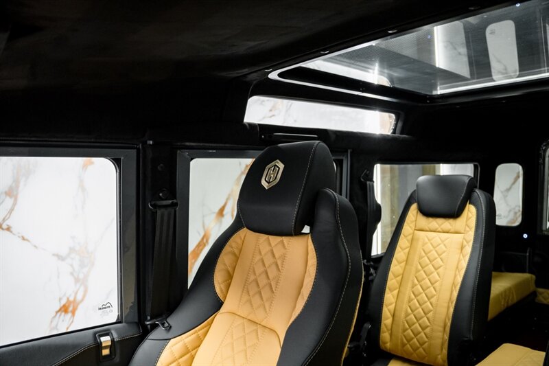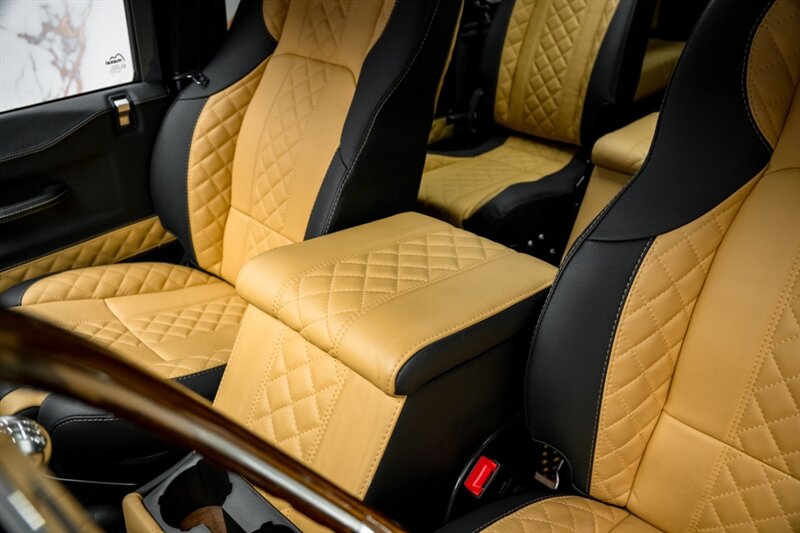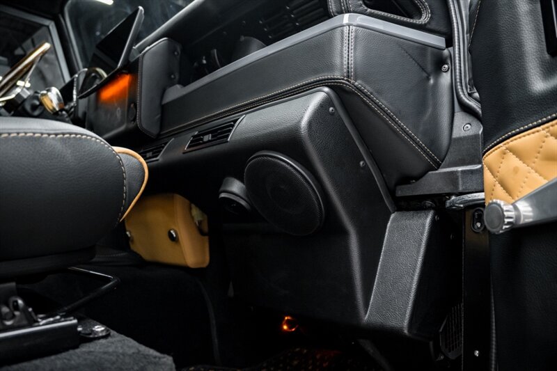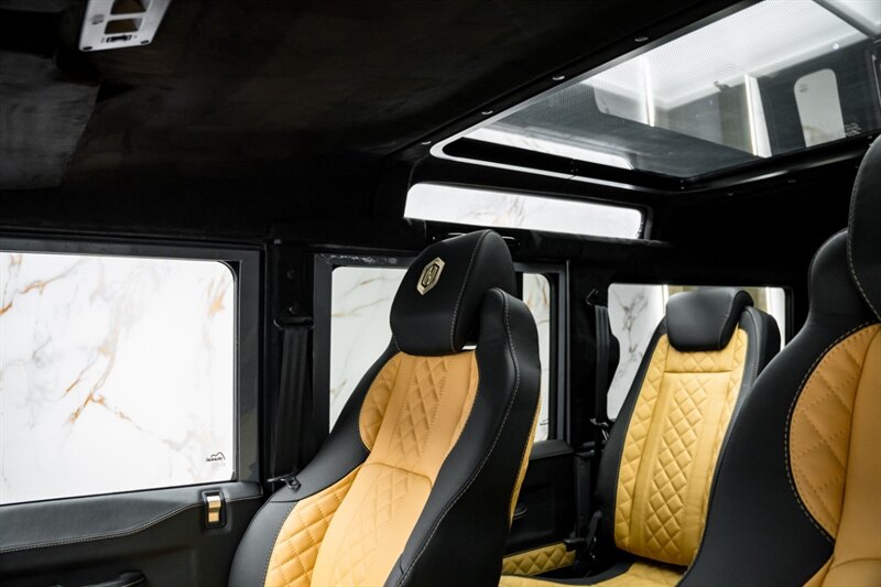 Inside, the Byzek delivers an atmosphere of craftsmanship and comfort. Dark leather upholstery with fawn diamond stitching, billet aluminum accents, and a panoramic roof create a refined, welcoming space. Every surface has been finished with precision — where rugged capability meets luxury design.