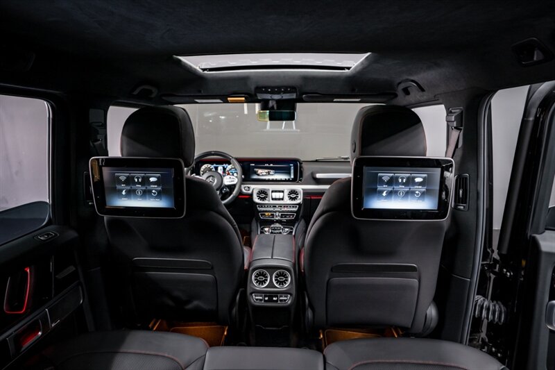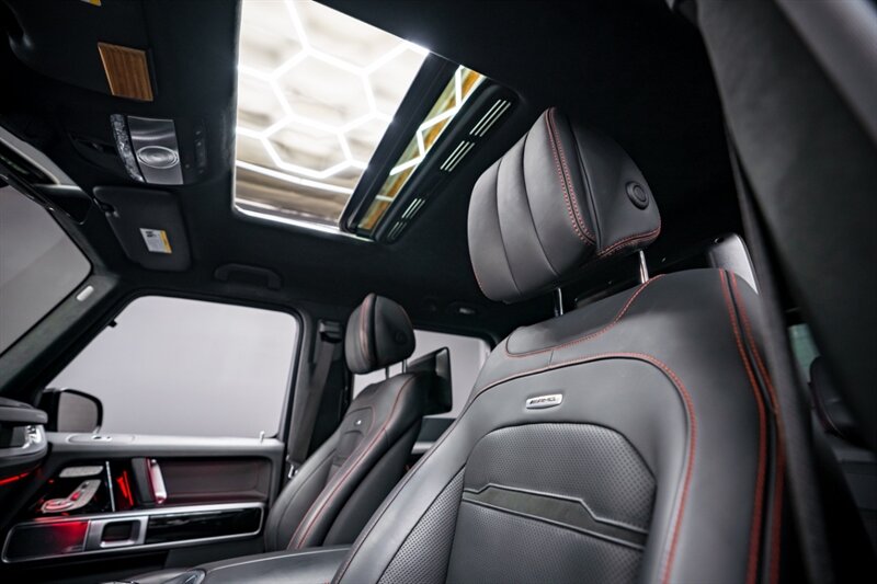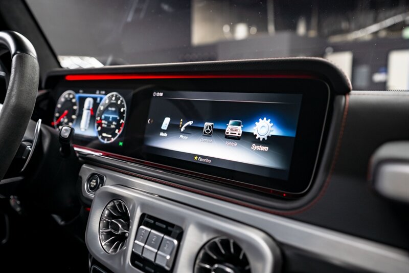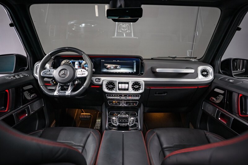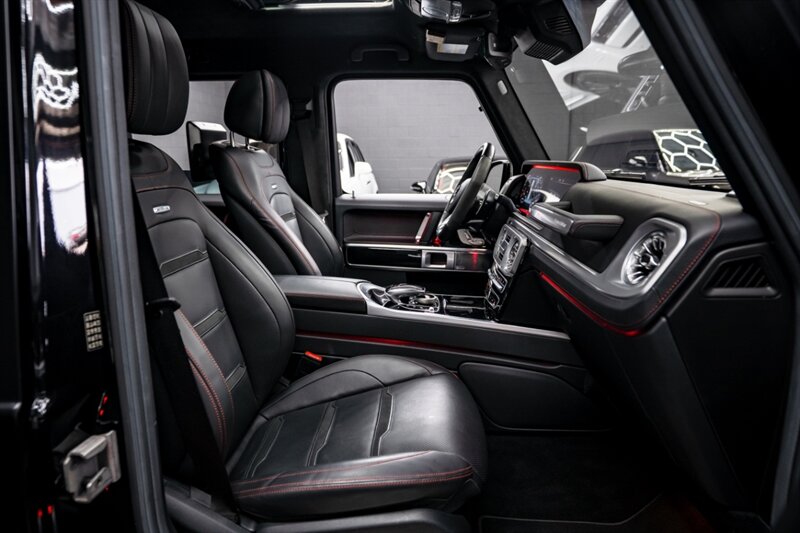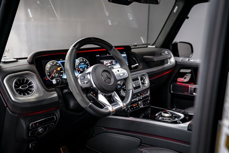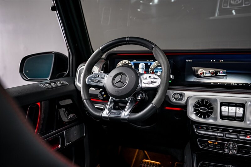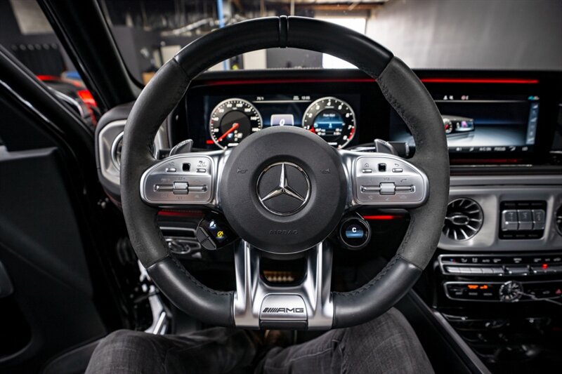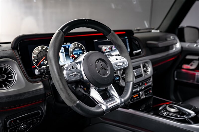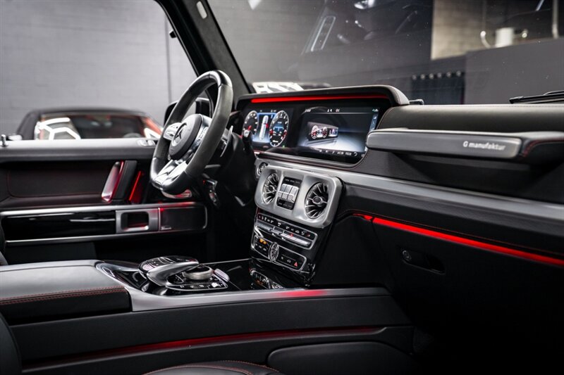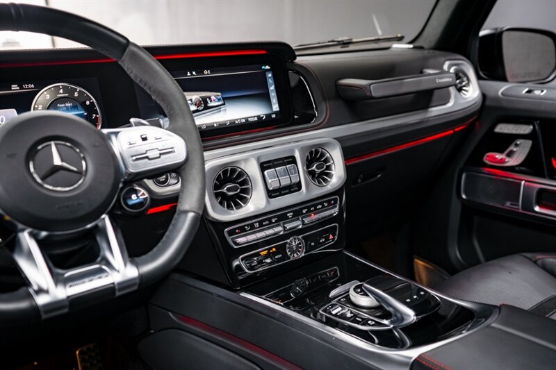 Under the hood, the handcrafted AMG 4.0L Twin-Turbo V8 produces an exhilarating 577 horsepower and 627 lb-ft of torque, paired with a smooth 9-speed automatic transmission and advanced all-wheel drive system. The G 63 delivers incredible on-road performance while maintaining the off-road capability that defines the G-Class.