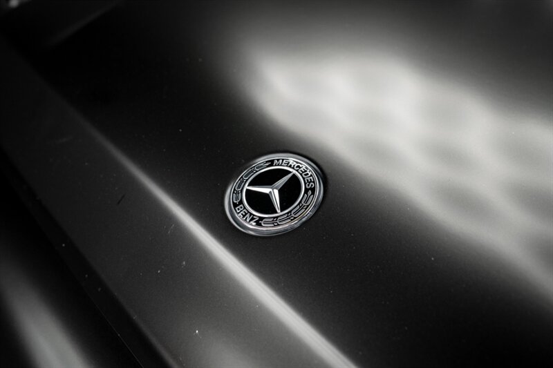 Signature AMG exterior styling with matte black wheels and side-exit exhaust
