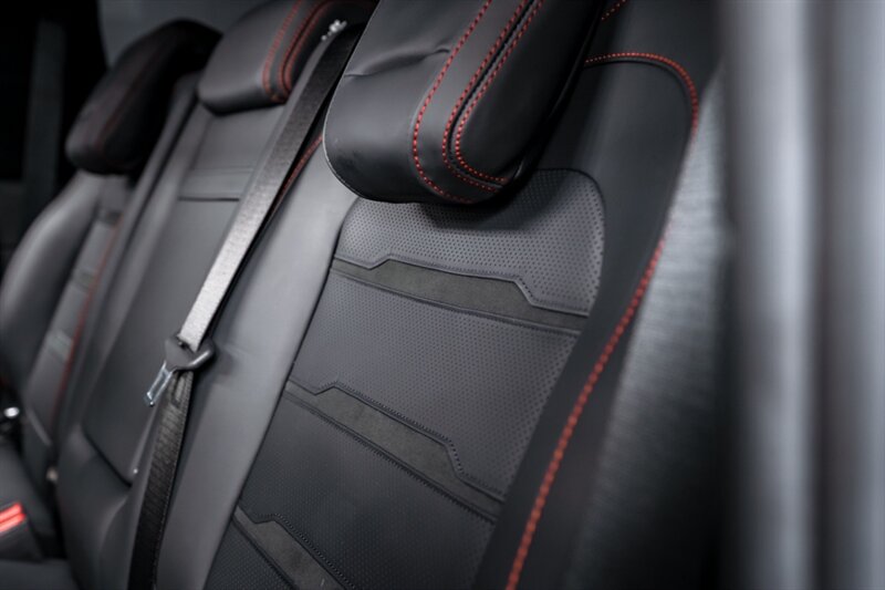 Inside, the cabin features premium leather seating with red contrast stitching, digital displays, and ambient lighting to set the mood. Rear passengers enjoy rear entertainment screens ensuring a connected and comfortable ride. The spacious cargo area and split-folding rear seats add versatility to its luxury.